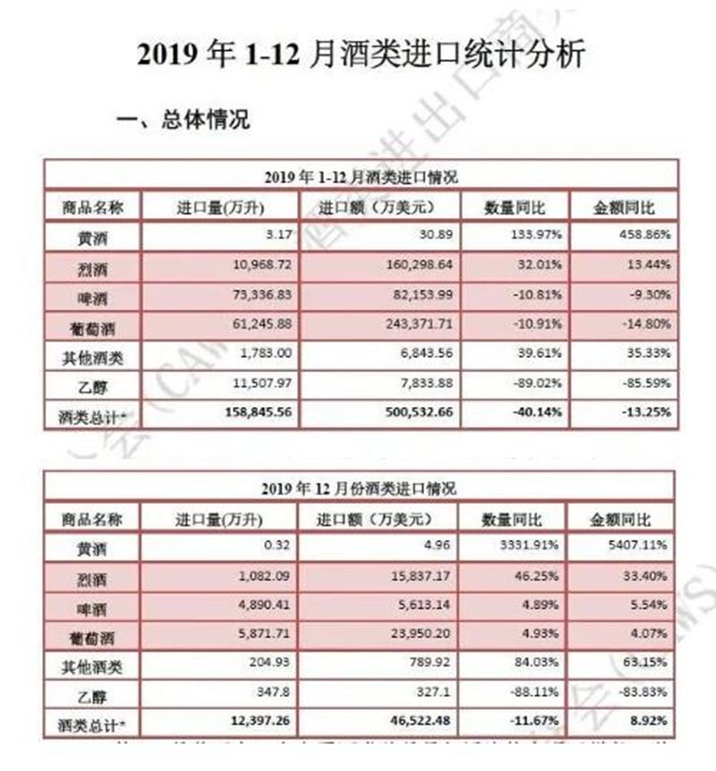 日前,中国食品土畜进出口商会酒类进出口商分会发布了最新的酒类进口数据。