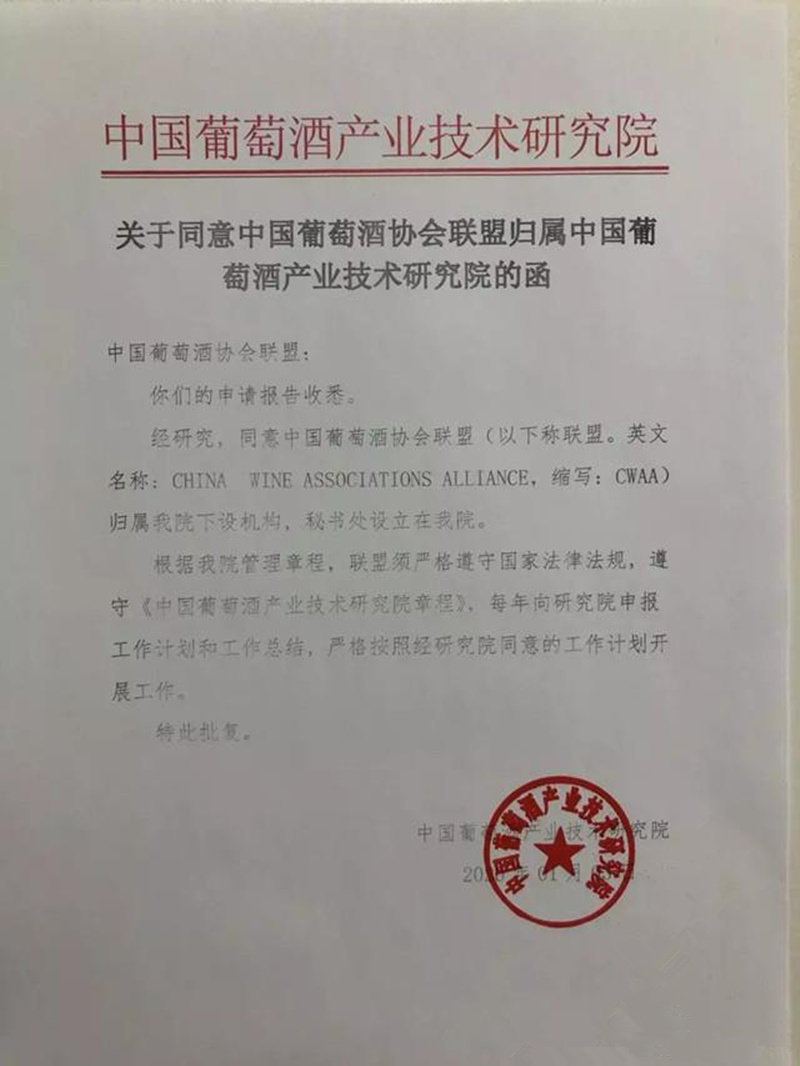 为了进一步推动联盟工作,营造更加良好的工作环境和合理合法的开展工作,近日,中国葡萄酒产业技术研究院审批通过中国葡萄酒协会联盟归属中国葡萄酒产业技术研究院领导,秘书处设立在中国葡萄酒产业技术研究院。今后联盟工作将在中国葡萄酒产业技术研究院的直接领导下开展工作,报备工作计划和工作总结。