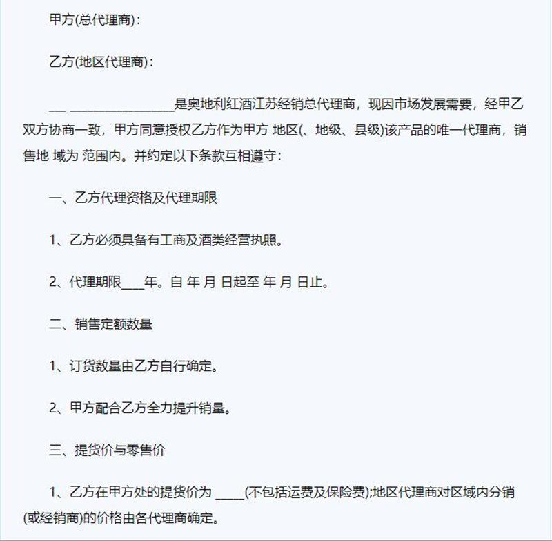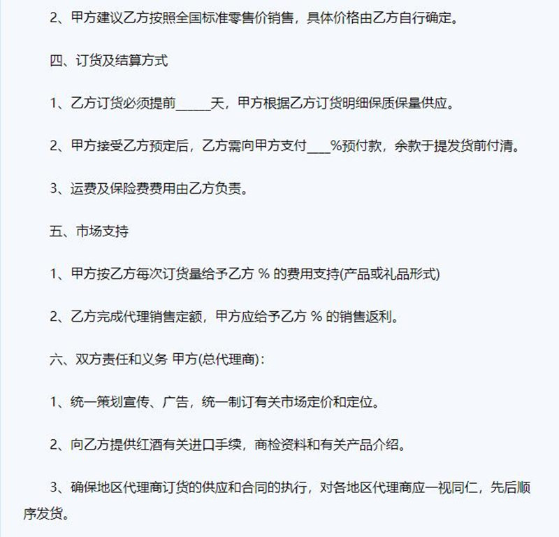 1、红酒代理合同范本大全