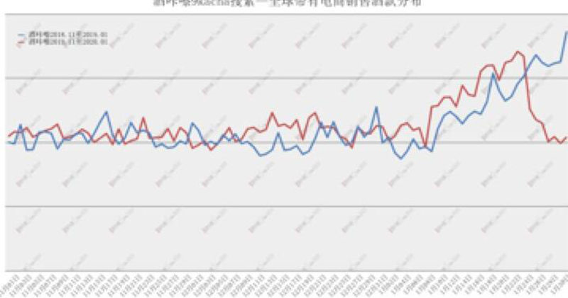 在Nov 2019 to Jan 2020——Nov 2018 to Jan 2019阶段,Baidu搜索量平稳增长,作为传统节日的春节后因假期及外部环境原因开始下滑。而同一时期内,9kacha搜索量增长明显,9kacha用户群体中,约1/3为葡萄酒行业用户,受春节、提前进入假期及外部环境原因,搜索量开始下滑,整个葡萄酒行业受假期及外部环境原因影响更加明显。