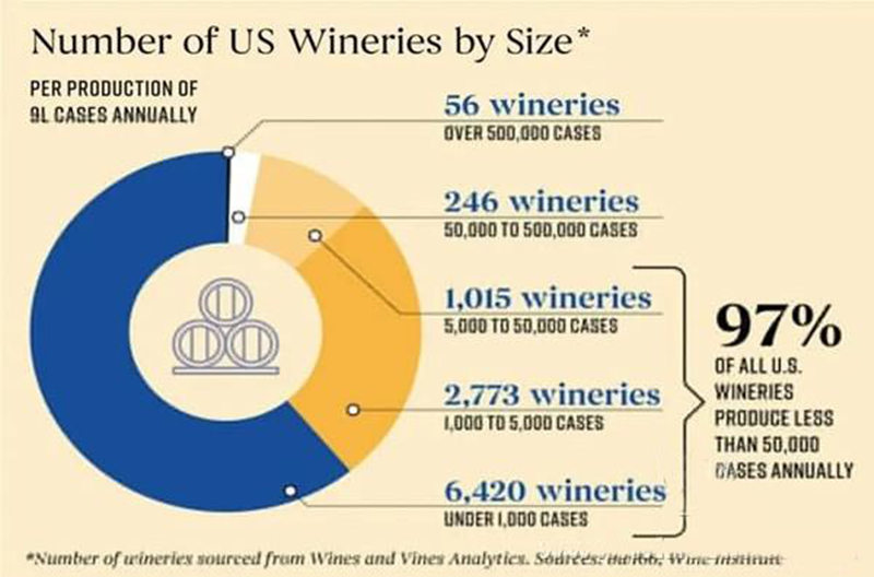 美国97%的酒厂生产的葡萄酒总和不到50000箱,预计年收入损失在36%到66%之间,受影响最大的是小型酒厂。规模越小的酒厂损失则越大,生产1000至5000箱的酒厂预计损失47.5%的年收入,而生产1000箱以下的酒厂其损失高达66%。