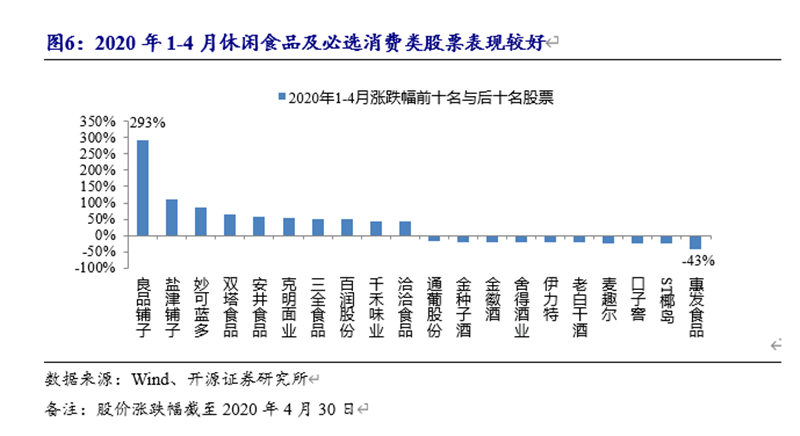 疫情期间消费场景发生变化,封城、封路、居家隔离使得消费者更多集中在家庭消费,具有居家囤货需求的必选消费以及具备“宅文化”属性的休闲食品表现较好。其中,葡萄酒品类中的通葡股份有着较突出表现。