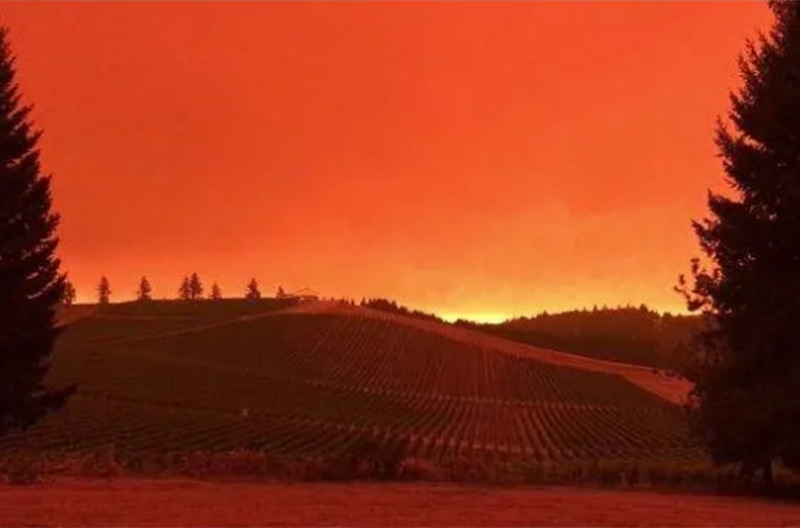 和加利福尼亚州一样,在大风的影响下,周三时俄勒冈州和华盛顿的大片地区燃起了大火,烟雾在整个葡萄酒产区飘散。